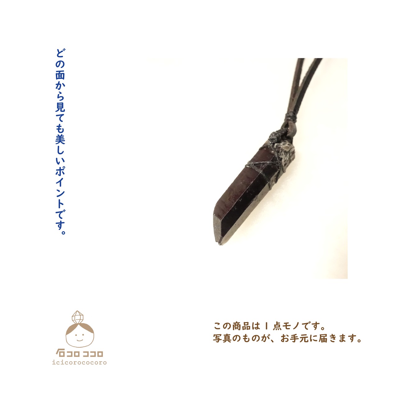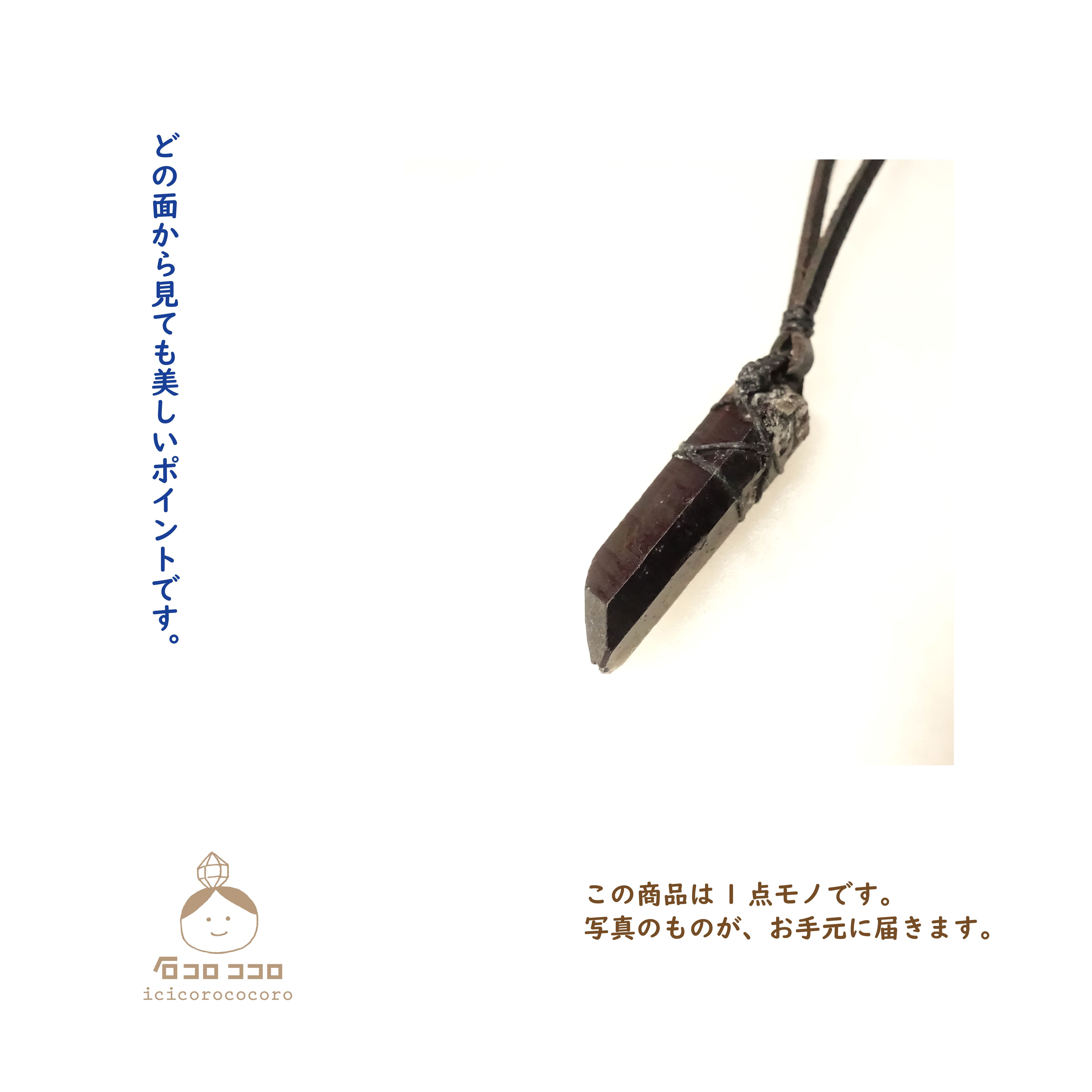 ごろん、とワイルド系 モリオンのポイント原石 革紐ペンダントです。