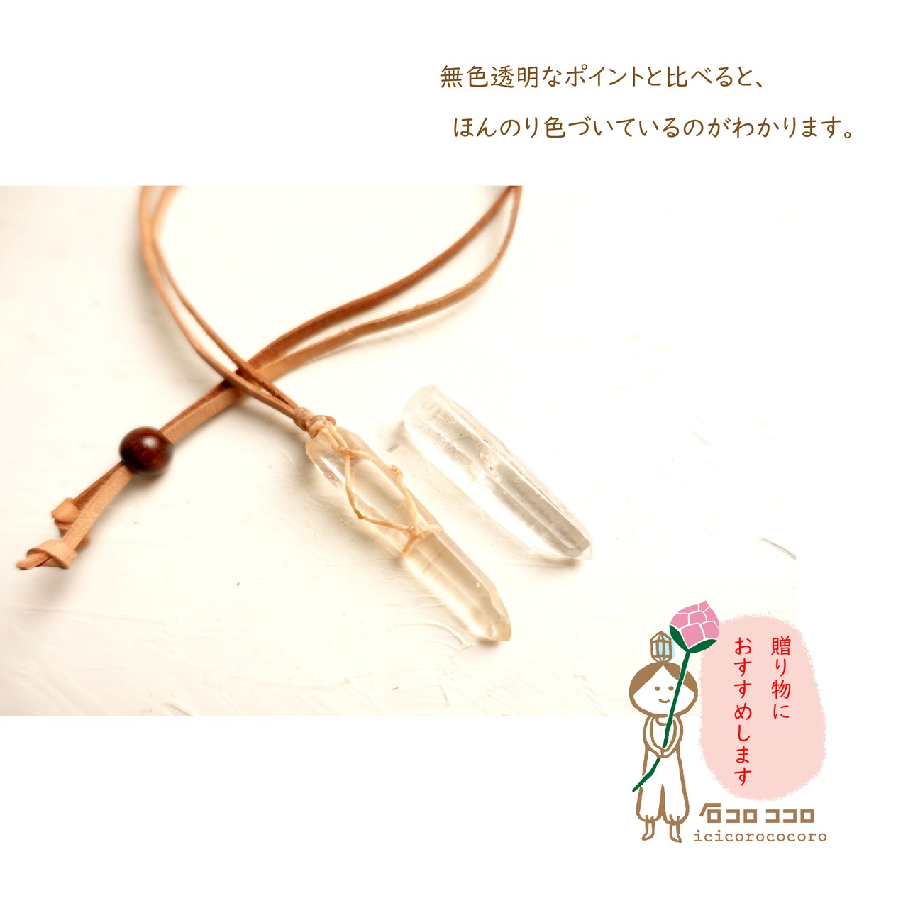 ・無色透明の水晶ポイントと並べると、全体が淡〜くみかん色になっているのがわかります。