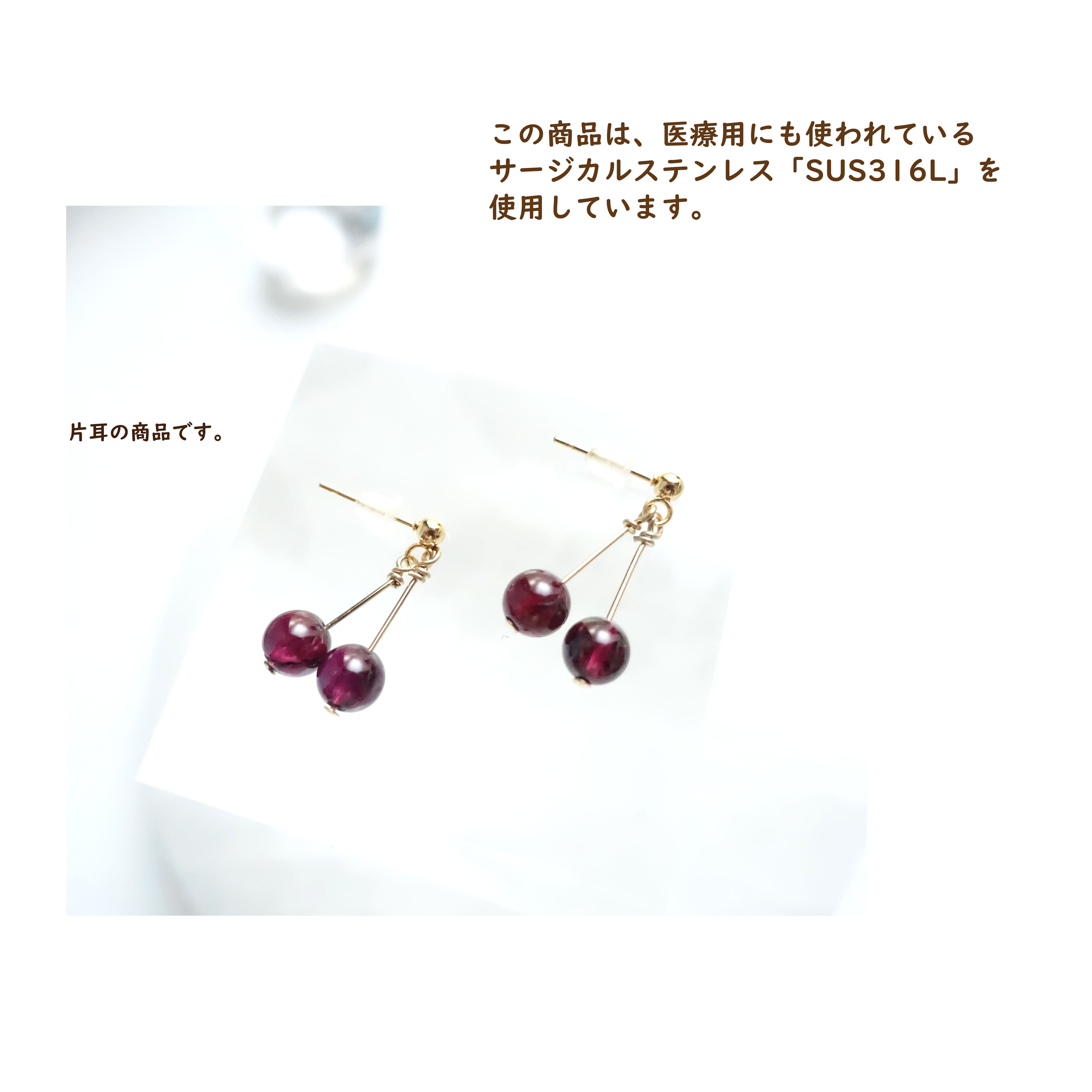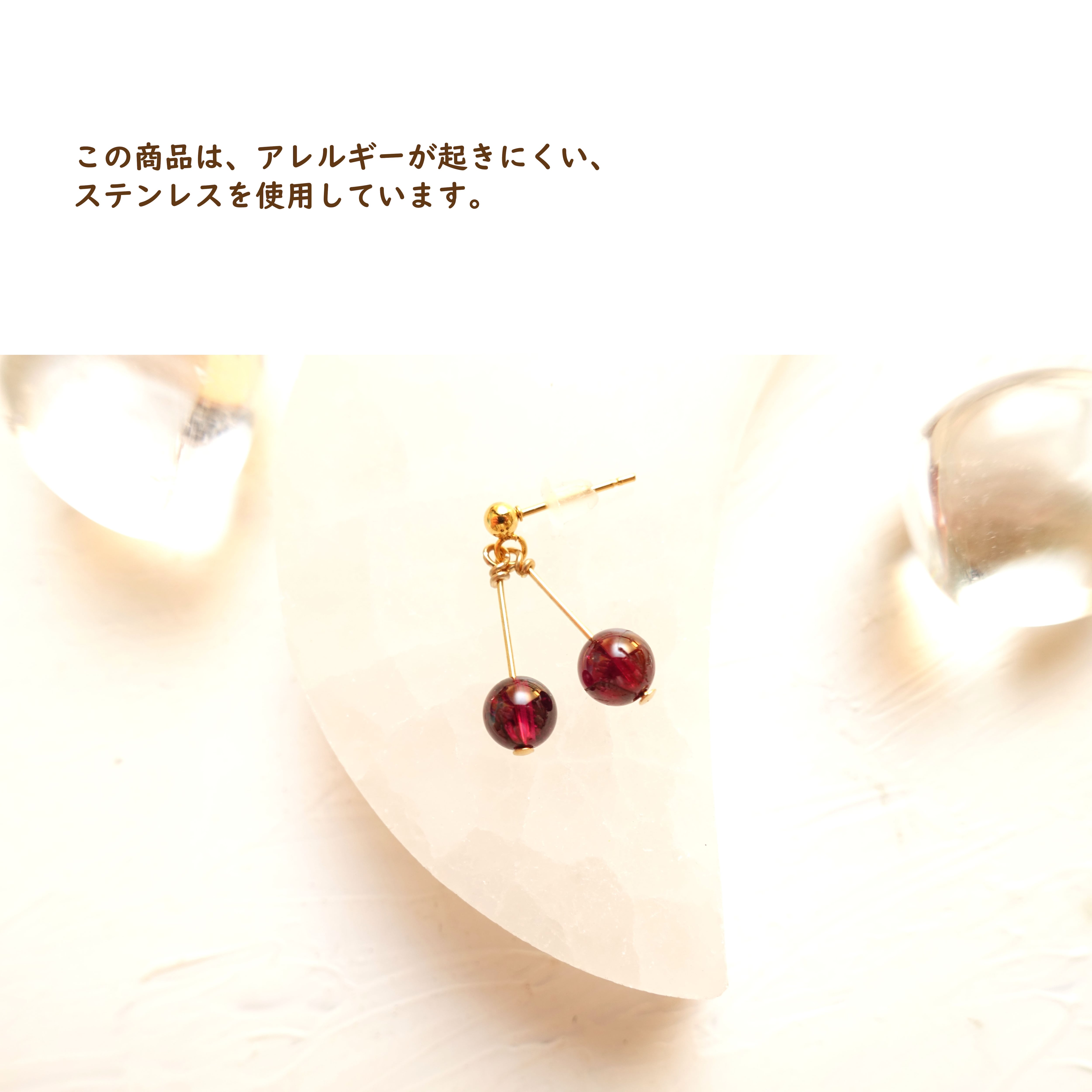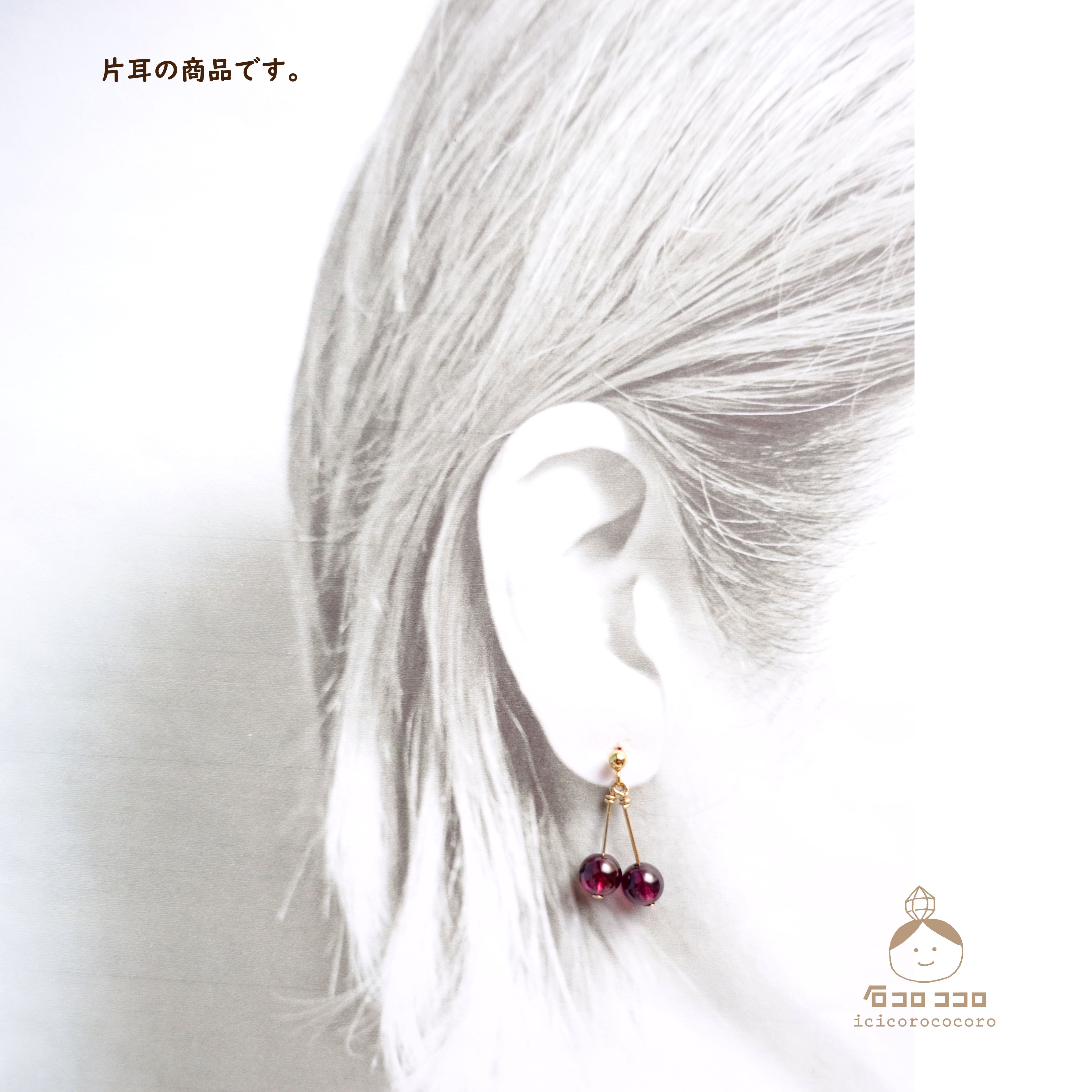 ・6.2-6.4mmほどのガーネットが2粒、森の木の実のように耳元で揺れます。