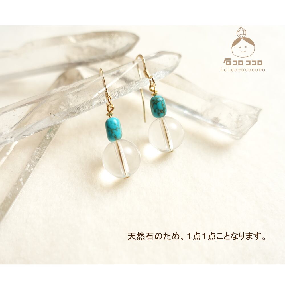・水晶とターコイズで、夏に付けたくなるピアスにしました。
