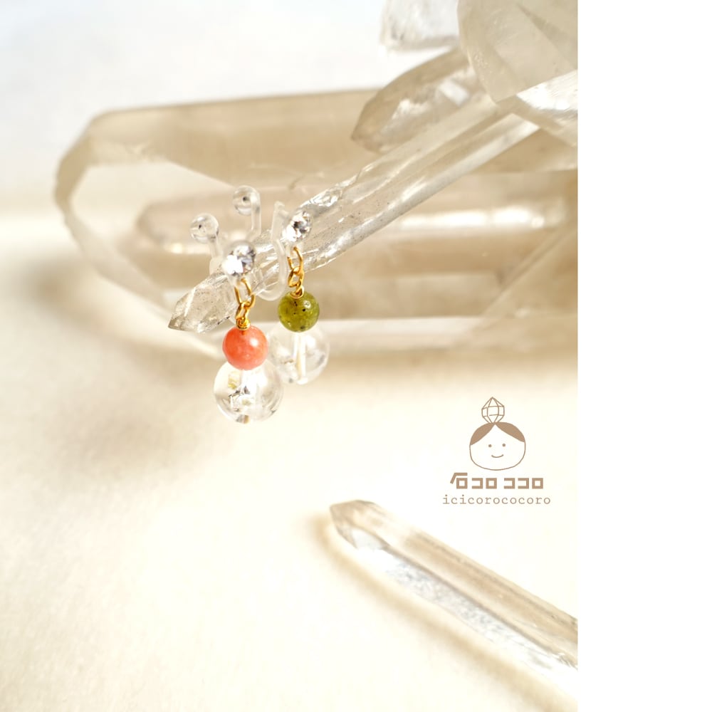 【水晶+小粒 !シリーズ】から、ノンホールピアス登場です。