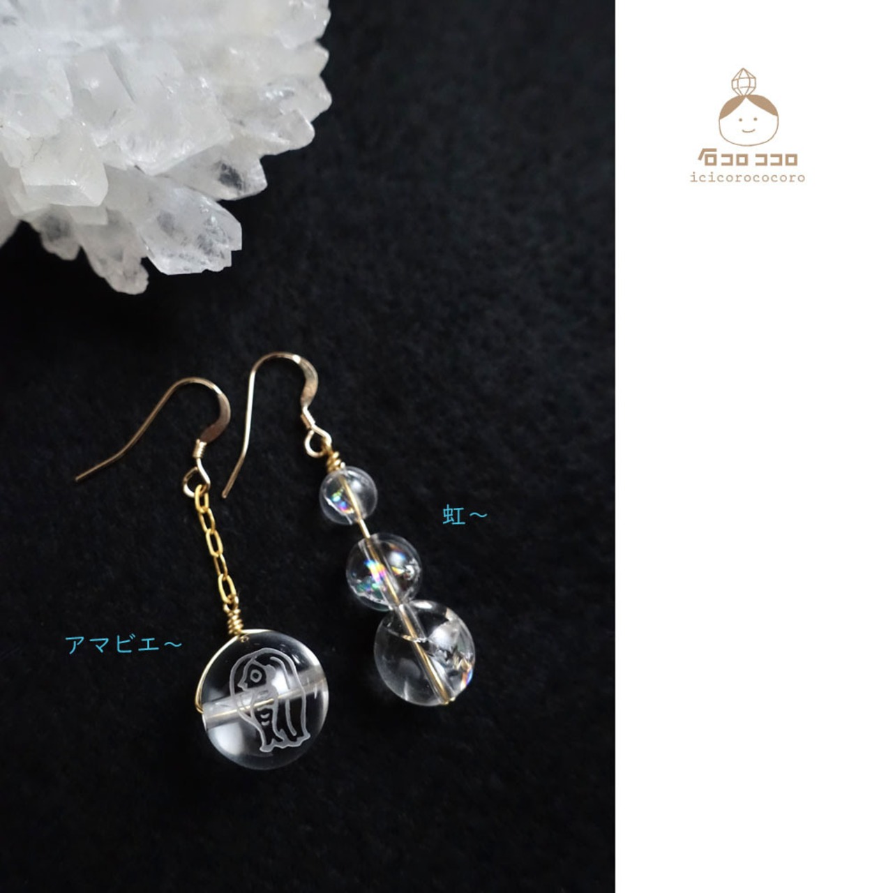 片方はアマビエ、もう片方は、豪華にも 3粒のアイリス(虹入り水晶)を使用しています。