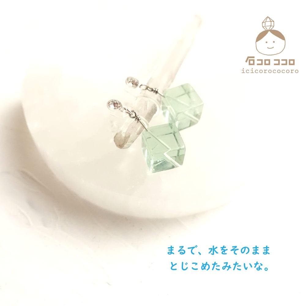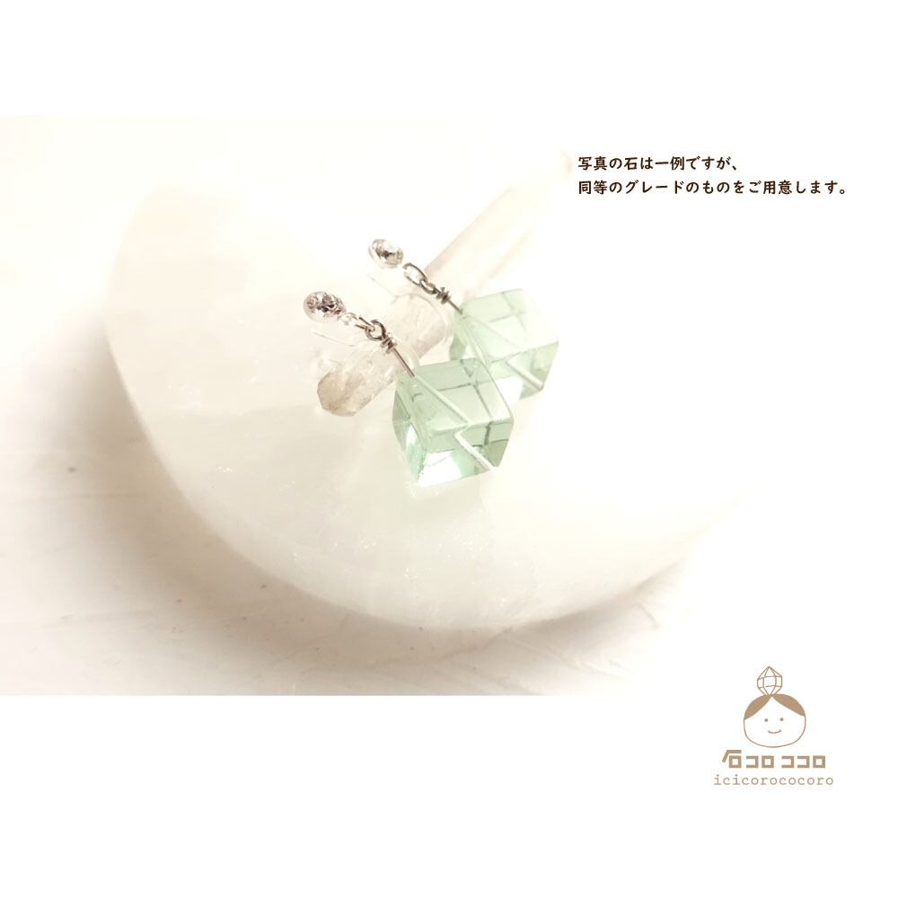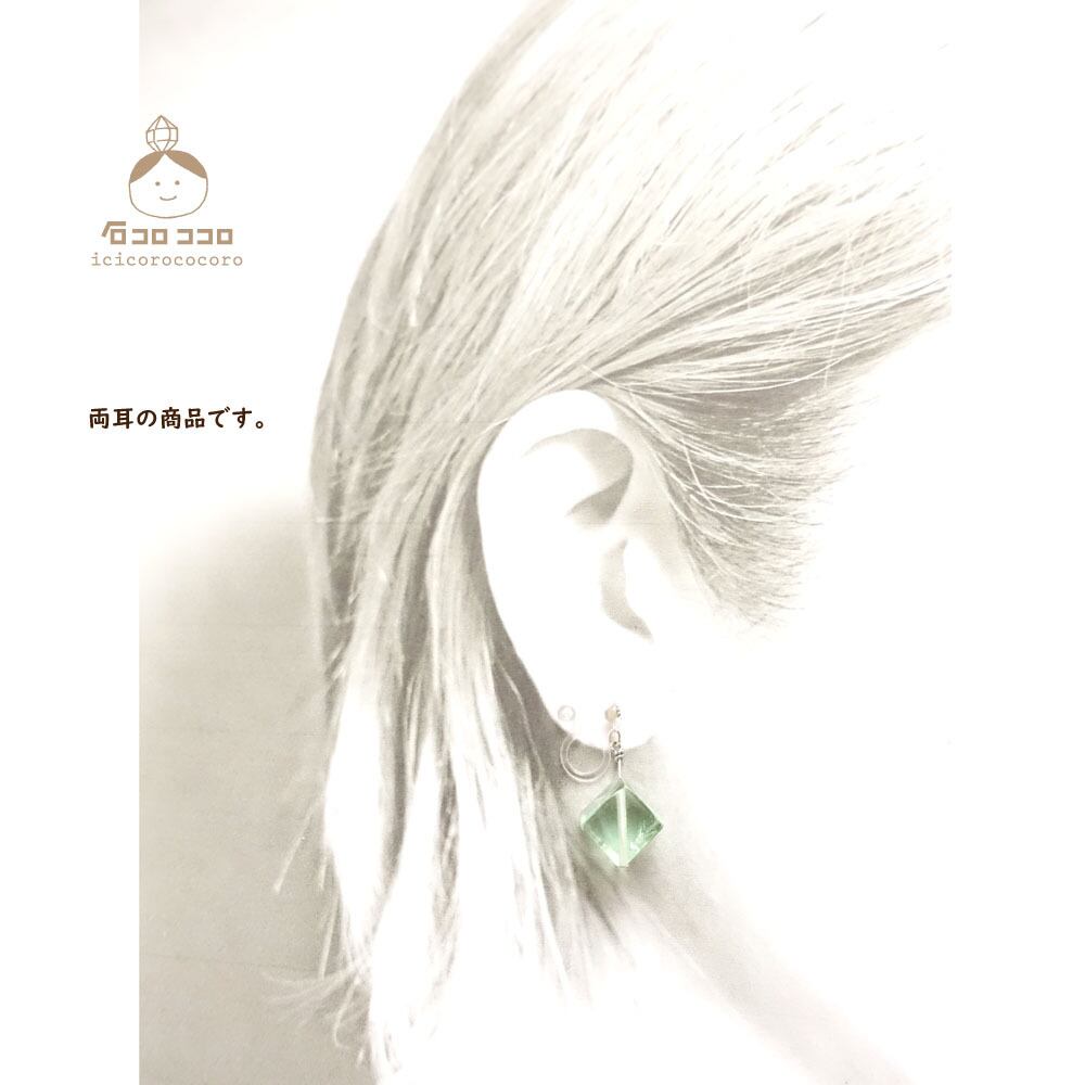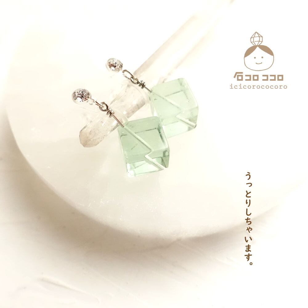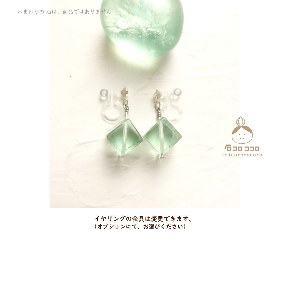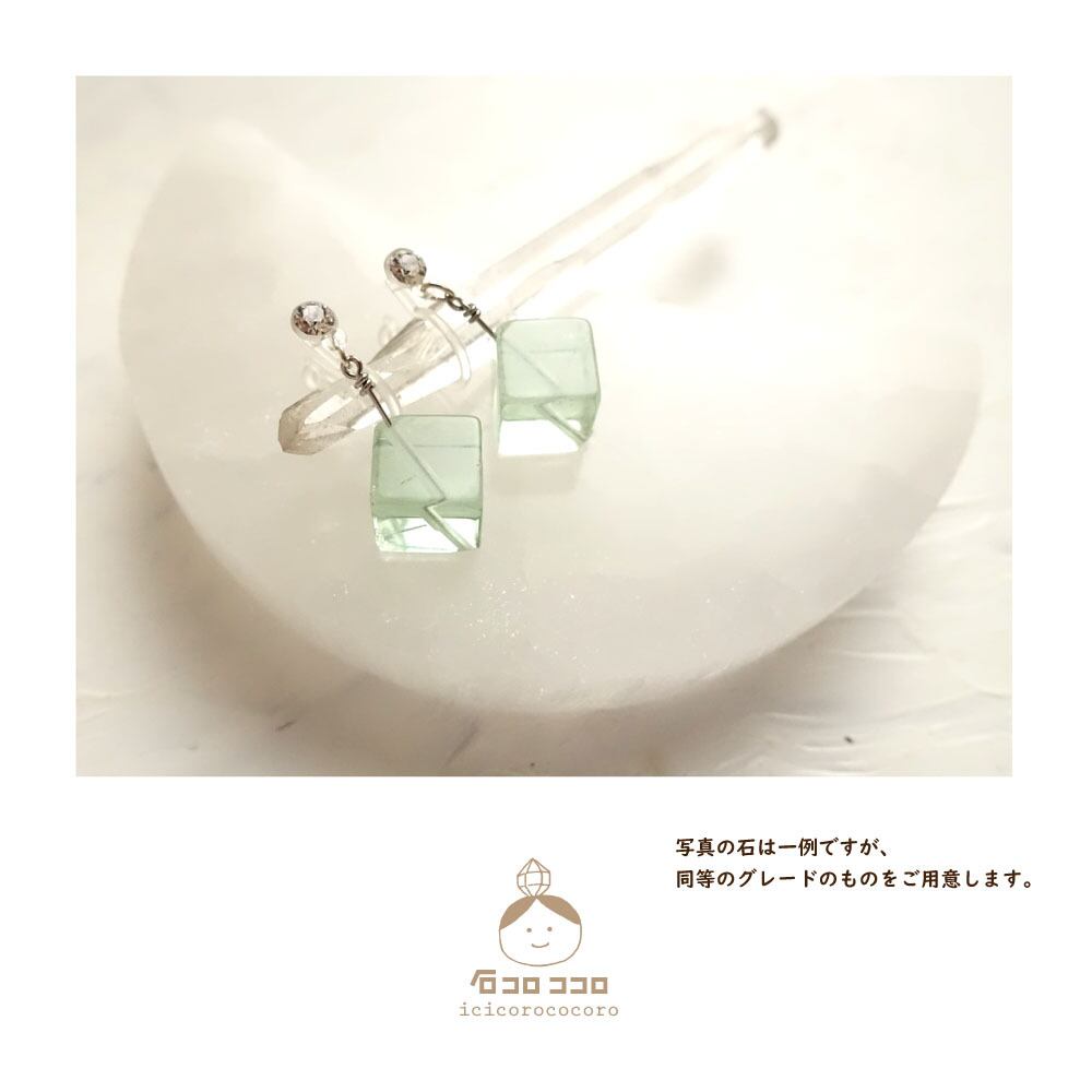 爽やかなブルーグリーンのフローライト(蛍石)のノンホールピアス。