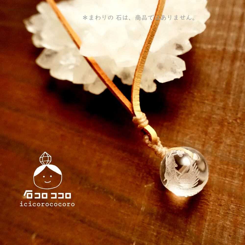 愛の象徴とされる〈朱雀〉の彫刻が入った水晶の「お守り石」ネックレス、