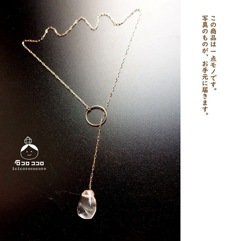 「胸元で」わっかに通す、着けやすいネックレスに仕立てました。